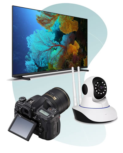Cell Phones, Tv, Audio and Video Equipment. Security cameras. Headphones and Cables.